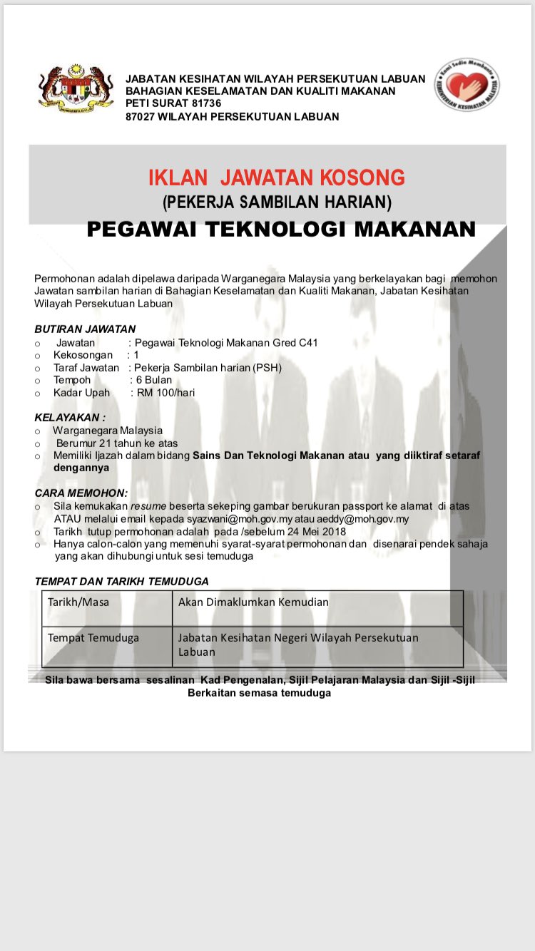Iklan Kerja Kosong Lada Pengambilan April 2018 Mohon Sekarang from i1.wp.com Pihak berkuasa kemajuan pekebun kecil perusahaan getah (risda) telah membuka peluang jawatan kosong 2021 kepada. Jawatan kosong 2021 di universiti malaysia pahang (ump) | permohonan adalah dipelawa daripada warganegara malaysia yang berkelayakan dan be. Jawatan kosong 2020 (kerajaan & swasta). Pemohon daripada warganegara malaysia yang berminat dan memenuhi kriteria yang telah ditetapkan dijemput untuk memohon jawatan kosong d. Pelbagai jawatan kosong 2018 di malezya. Jawatan kosong lembaga kenaf dan tembakau negara. Tak hanya kerja kosong untuk pesara, disini juga ada berbagai macam kerja kosong. Jika tidak mencari yangg anda cari sila request ke kenalan kami dan gunakan ciri search diatas.